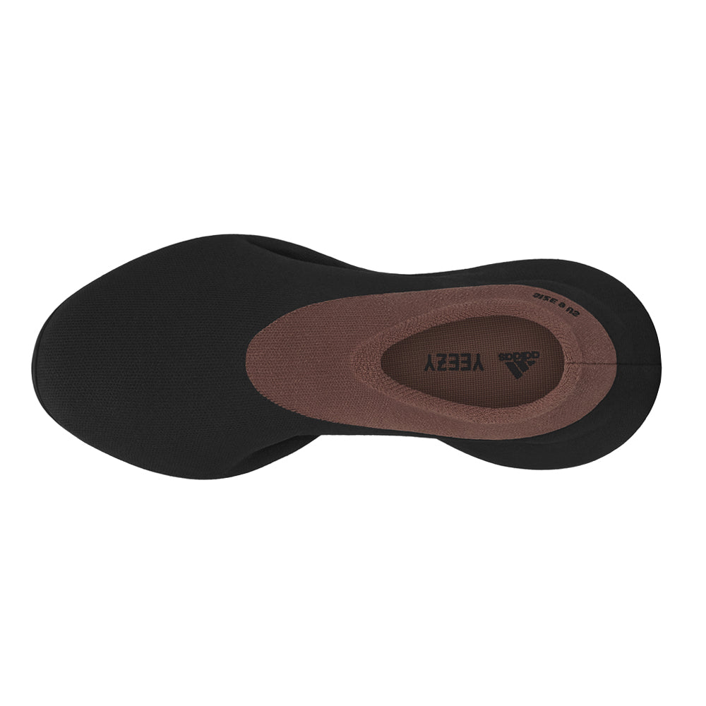 The adidas Yeezy Knit Runner ‘Stone Carbon’ delivers a subdued two-tone colorway of the minimalist silhouette. The laceless upper is constructed from black knit textile with a contrasting ring of rust brown around the collar. Dual Yeezy and adidas branding is found on the sockliner, while the shoe size is listed on the lateral collar. A concealed Ethylene Vinyl Acetate midsole offers lightweight cushioning with each step. Underfoot, the rubber outsole features a modified herringbone tread for superior grip.