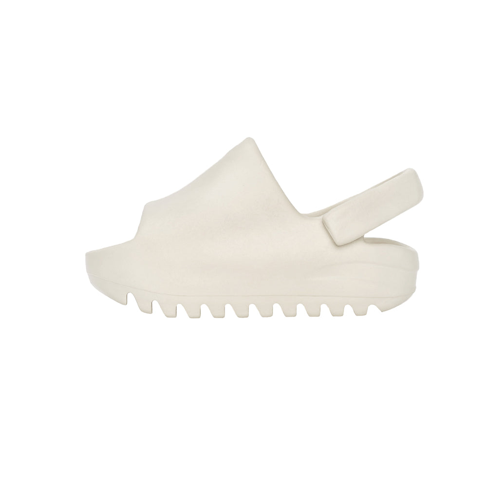 The adidas Yeezy Slides Infants ‘Bone’ pairs an eye-catching one-note finish with a minimalist design built for comfort. A neutral shade is applied to the slip-on, crafted from injected EVA foam and equipped with a heel strap for an extra-secure fit. Debossed at the base of the plush footbed, adidas’ Three Stripes logo represents the only bit of exterior branding. The sandal rides on a sawtooth outsole that delivers both grippy traction and impact protection.