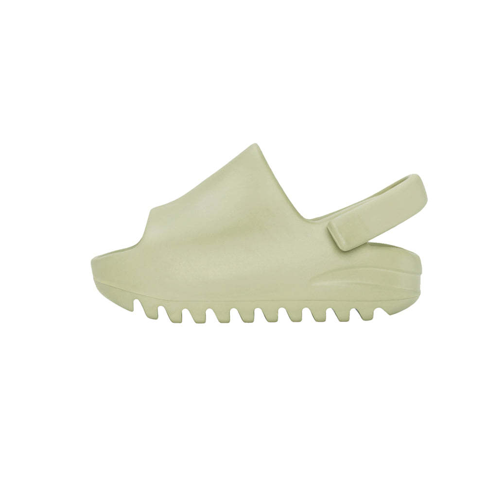 The Adidas Yeezy Slide Sandals finished in an understated and neutral hue, the miniature slip-on differs from its full-sized counterpart by adding an adjustable strap at the heel for an extra secure fit. The soft yet durable foam build rides atop a ripple outsole, good for added traction and comfort.