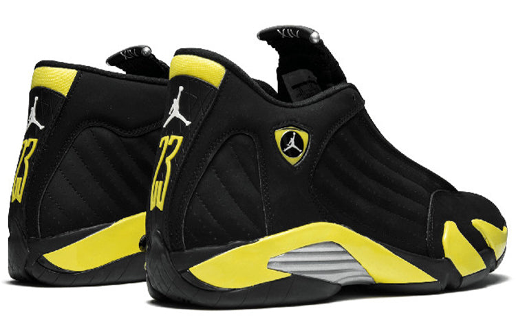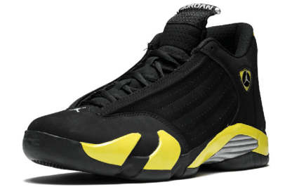 One of the most anticipated Air Jordan's of 2014, the Air Jordan 14 Retro 'Thunder' was inspired by the classic Air Jordan 4 'Thunder.' The black suede upper is contrasted by Vibrant Yellow accents on the heel and Jumpman badge, with the color also making its way to the midsole. This eye-catching colorway is sure to turn heads and is a must-have for any Air Jordan fan.