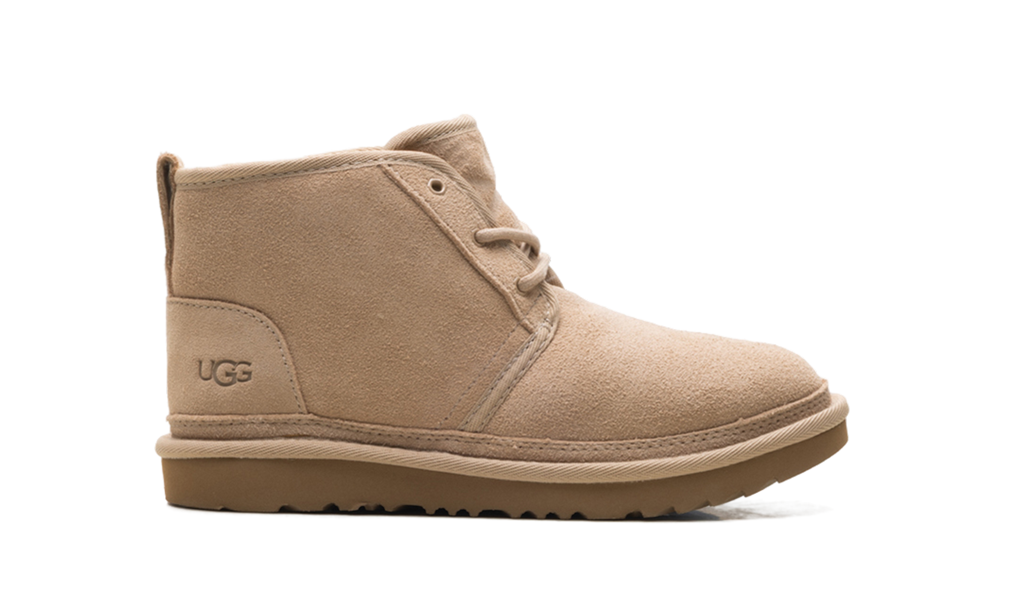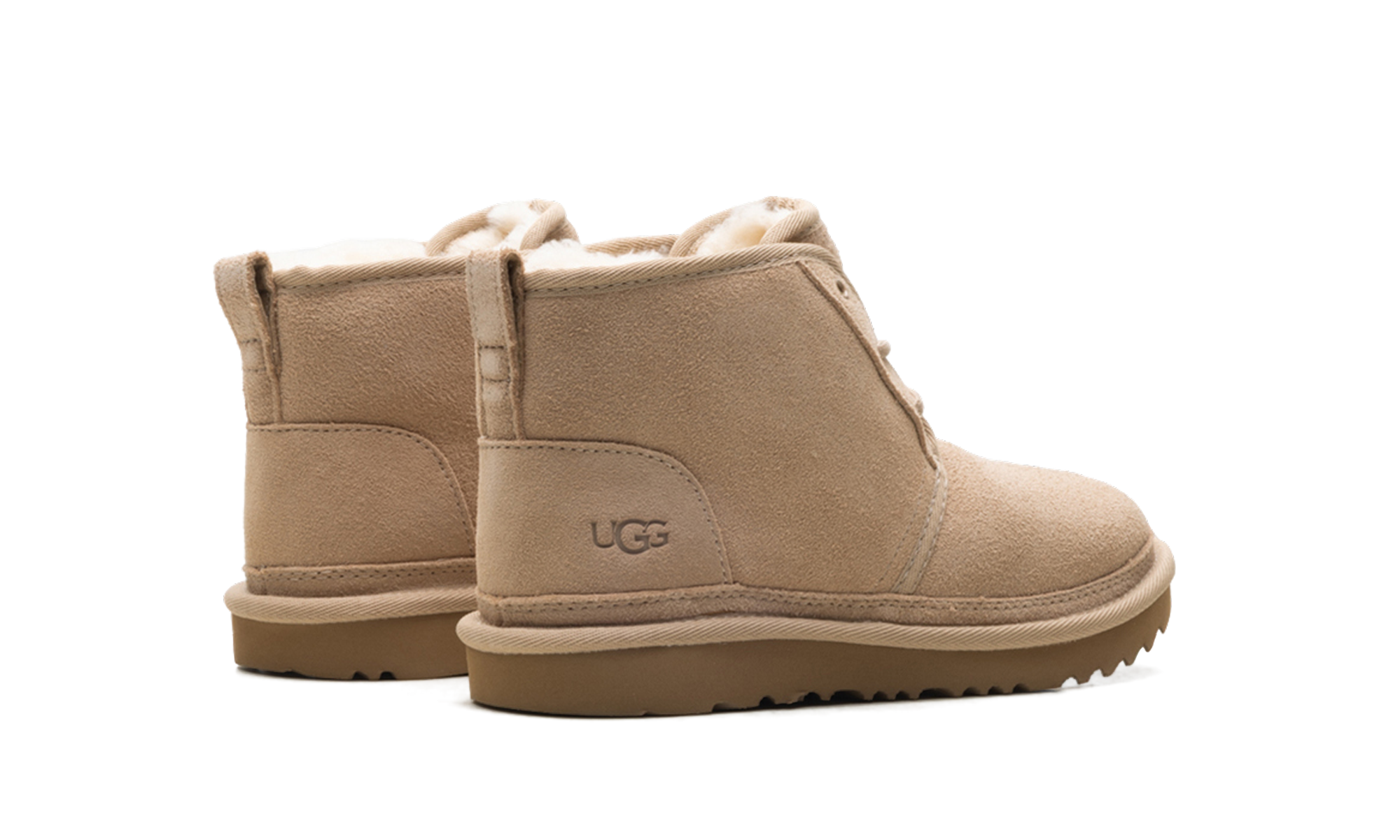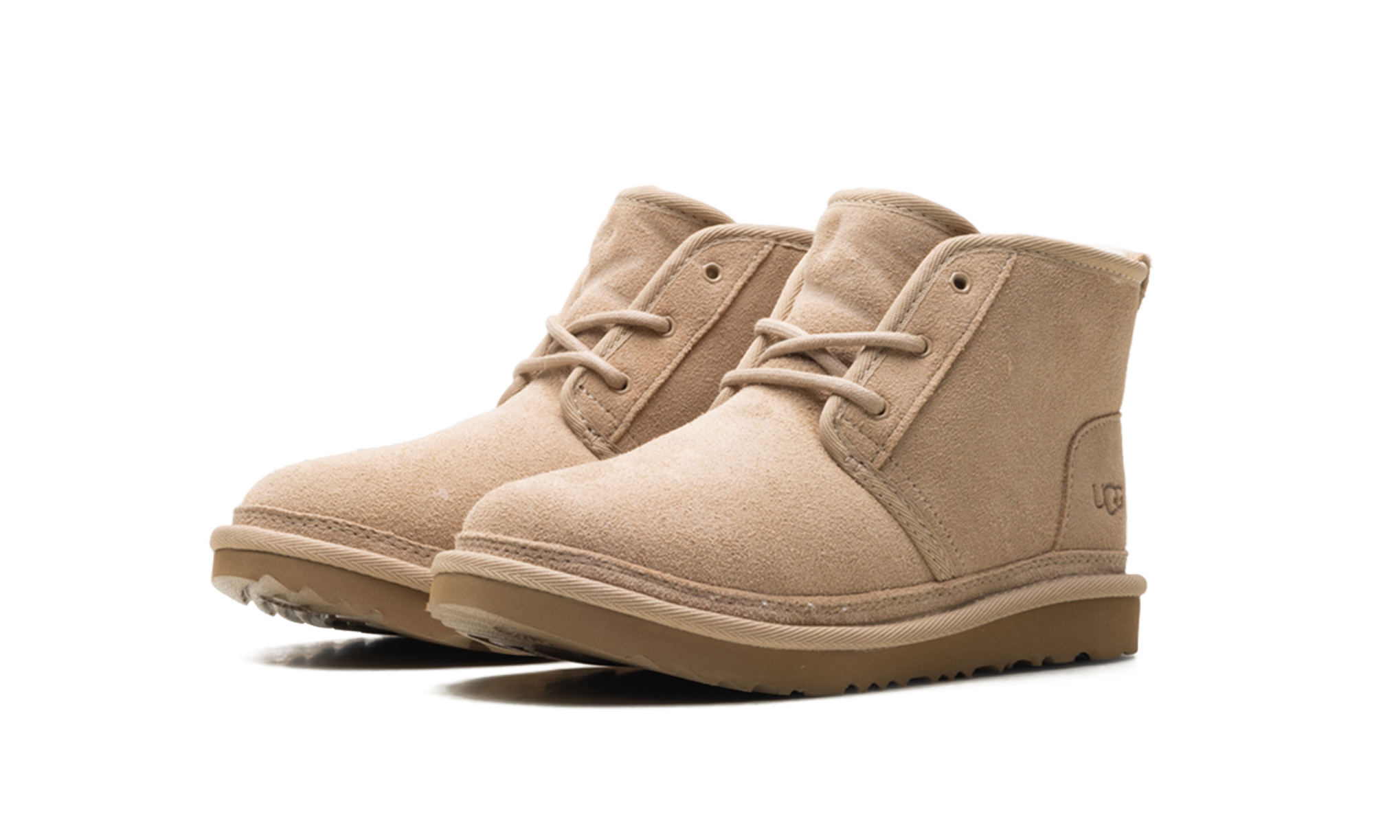 Get your kid ready for cozy style with the popular UGG Neumel Boot GS "Sand". These lace-up Grade School boots feature a soft suede upper and are lined with plush UGGpure™ wool for ultimate warmth and comfort. The flexible yet durable outsole is perfect for running, jumping, and playing all day. This classic chukka boot style provides dependable support and effortless fashion, making it a favorite for every adventure.
